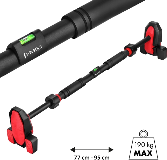 Montaža poteka popolnoma brez vrtanja – nastavite dolžino 77–95 cm, zategnete ključavnico in s pomočjo vgrajene libele enostavno poravnate v idealen položaj. Mehki peneči ročaji so prijetni na dotik in ne drsijo niti pri daljših treningih. Droga je primerna za dvige nadhvatom in podhvatom, vise, avstralske pritege ter vaje za trebuh.