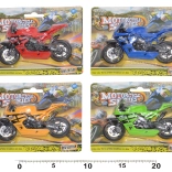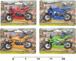 Majhen, a hiter! Ta dirkalni motor dolžine 11 cm bo razveselil vsakega ljubitelja hitrosti. Zahvaljujoč prostim kolesom se po tleh vozi zlahka in gladko ter je idealen za otroške dirke in domačo zbirko. Na voljo v 4 veselih barvah – modra, zelena, rdeča in rumena.