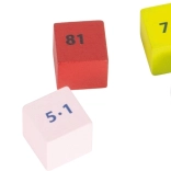 Barvite lesene kocke z nalogami spodbujajo otroke k odkrivanju in vsakodnevnemu ponavljanju poštevanke.