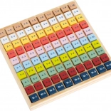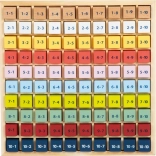Lesena tabla z barvitimi kockami z nalogami poštevanke