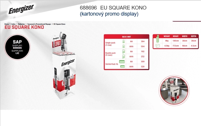 Stojalo za baterije ENERGIZER je idealna izbira za maloprodajne trgovine, ki želijo imeti širok izbor baterij na enem mestu. Zasnovano je za hitro orientacijo strank in enostavno dopolnjevanje zalog, s čimer prispeva k boljši organizaciji prodajnega prostora in višji prodaji.