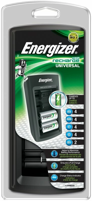 Iščete en polnilec za vse vaše polnilne baterije? Univerzalni polnilec ENERGIZER hkrati podpira velikosti AA, AAA, C, D in 9V, zato pokrije potrebe daljinskih upravljalnikov, igrač, svetilk in avdio opreme. Zahvaljujoč pametni elektroniki s samodejnim zaključkom polnjenja po približno 3–5 urah ščiti baterije in podaljšuje njihovo življenjsko dobo.