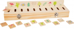 Za otroke, ki želijo odkrivati, kako stvari delujejo, je ta lesena motorična izobraževalna igrača od Small Foot idealna izbira. Namenjena je za razvrščanje rastlin, sadja in živali, kar pomaga pri razvoju prepoznavanja barv in oblik pri otrocih. Vse se lahko enostavno shrani v igralnem okvirju.