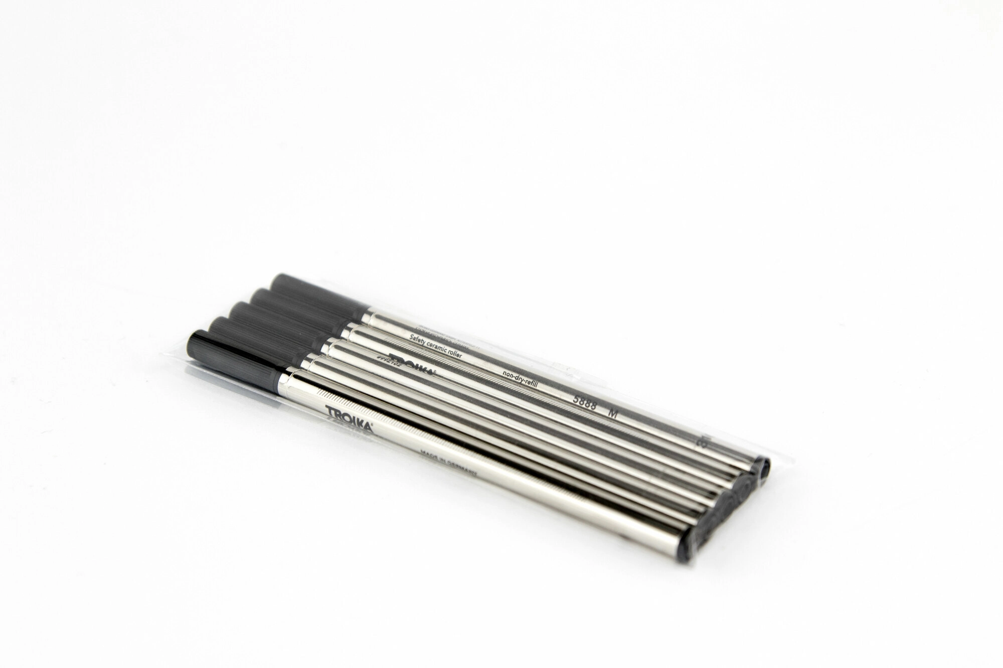 Komplet 5 črnih vložkov TROIKA zagotavlja zanesljivo in enakomerno delovanje pri pisanju. Zahvaljujoč hitro sušečemu se črnilu se zmanjša packanje, medtem ko keramična konica omogoča tekoč poteg in udoben občutek pri pisanju.
