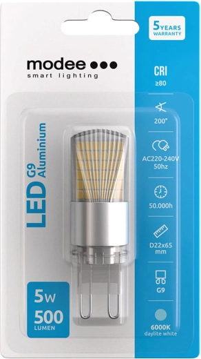Ta kompaktna „kapsulna“ žarnica z grlom G9 je idealna za lestence, pohištvena svetila, vgradne luči in za kopalnico. Ponuja jasno, hladno belo svetlobo 6000 K z zvestim podajanjem barv CRI >80, zato predmeti delujejo naravno in berljivo.