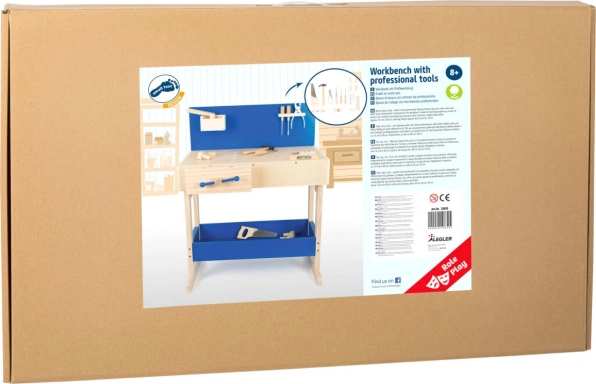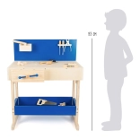 Lesena delovna miza ponuja otrokom možnost posnemanja pravega dela z orodjem in razvija njihovo fino motoriko ter domišljijo. Miza je opremljena z različnimi orodji, kot so žaga in kladivo.