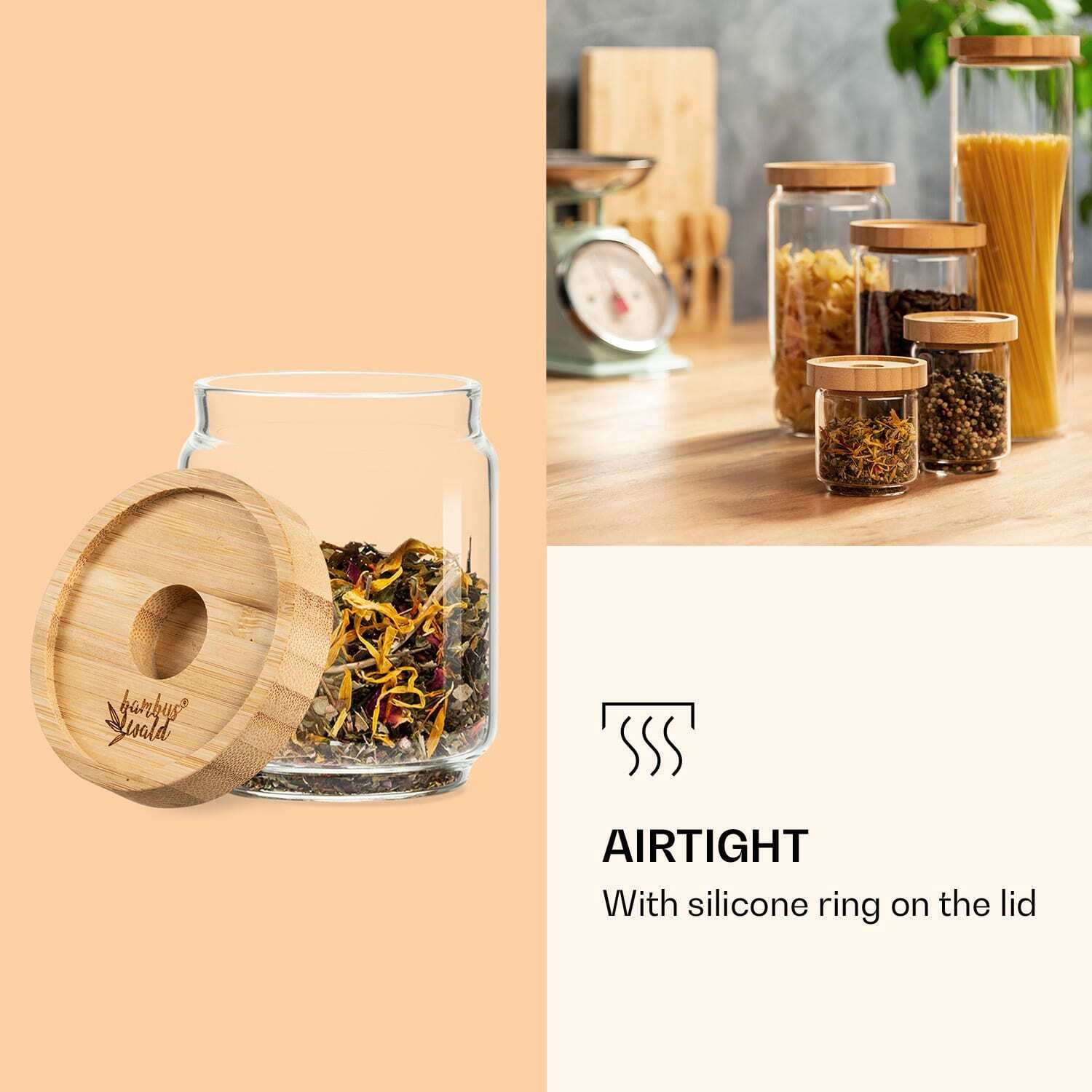 - 1× steklena posoda, 1× bambusov pokrov