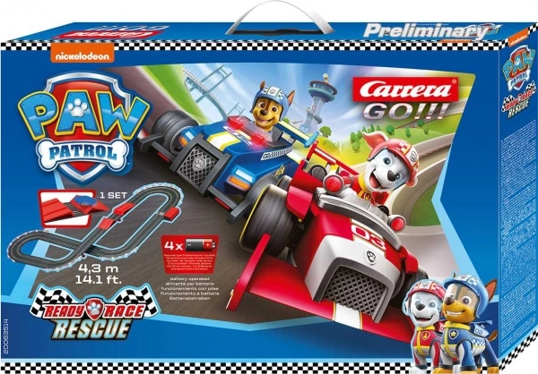 Zabavna avtocestna steza CARRERA GO z motivom Tačk na patrulji prinaša otrokom od 5 let 4,3 m dolg krog z avtomobilčkoma Chase in Marshall. Set ponuja skakalnico, most, ravnine in zavoje ter napajanje na baterije z možnostjo dokupa napajalnika. Združljivo z avtomobili in deli GO!!! za še več zabave.