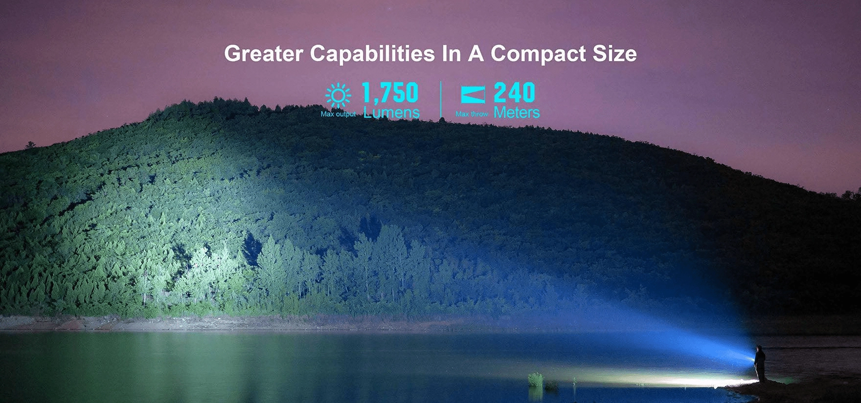 Z največjo svetilnostjo 1750 lm in dosegom 240 m pokrije iskanje na terenu in delo na kratki razdalji. Pet stopenj svetlosti + stroboskop, neposreden dostop do moonlight načina in pomnjenje zadnjega načina povečajo udobje uporabe. Magnetno dno omogoča prostoročno uporabo na kovinskih površinah in enostavno polnjenje brez odstranitve baterije.