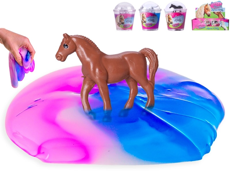 Odkrijte zabavno sluz s presenečenjem – v vsakem lončku vas čaka prikupen konjiček HORSE FRIENDS. Barvna masa je raztegljiva, stiskalna in oblikovalna, idealna za senzorično igro in ustvarjalno zabavo. Odlična za otroke od 3 let, ki imajo radi konje.