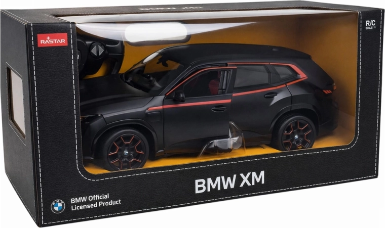 Licenčni model BMW XM v merilu 1:14 znamke RASTAR prinaša realističen dizajn, gibanje v vse smeri in zanesljivo upravljanje 2,4 GHz. Črna športna izvedba z rdečimi poudarki, funkcionalnimi sprednjimi in zadnjimi lučmi, odpirajočimi se vrati in gumijastimi pnevmatikami zagotavlja zabavo za otroke in odrasle.