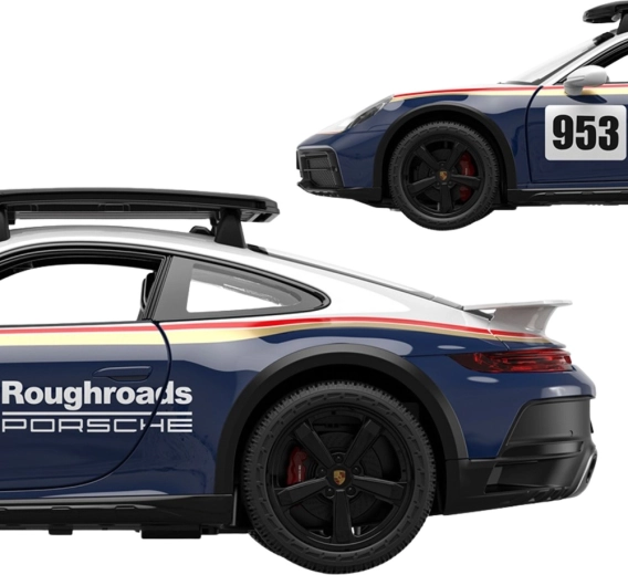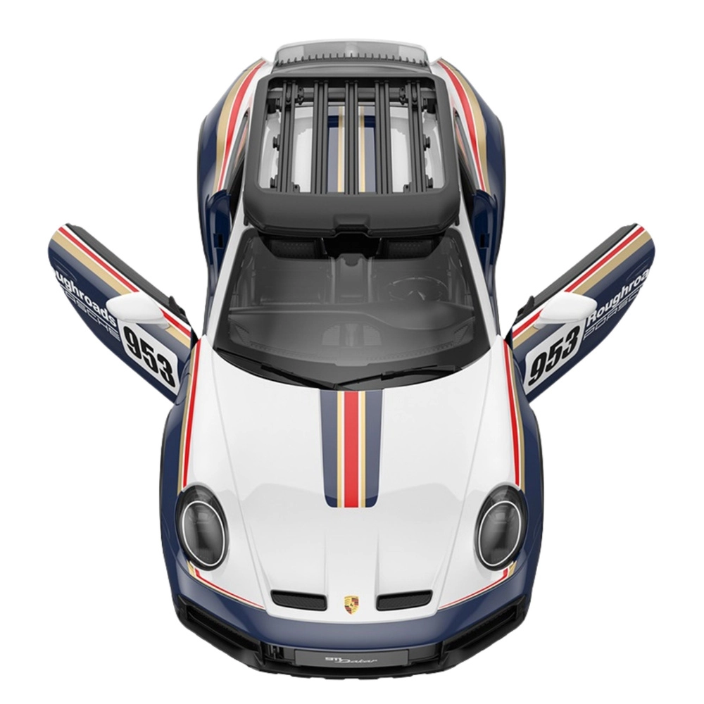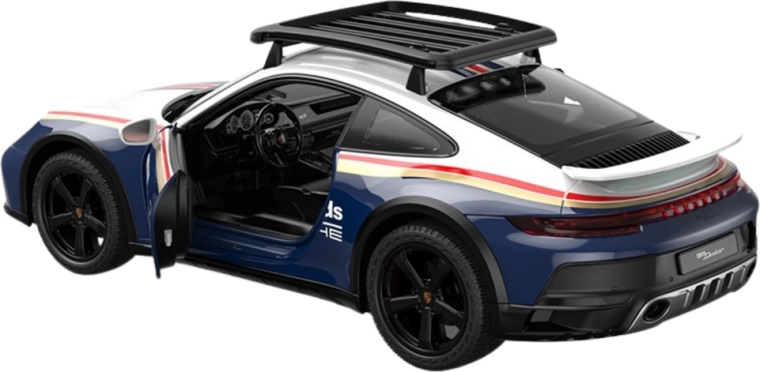 Odkrijte kombinacijo športne dinamike in off-road sloga z licenciranim R/C modelom Porsche 911 Dakar. Natančno izdelani detajli karoserije, realistno lakiranje in kakovostni materiali naredijo ta avtomobil privlačen kos za igro in zbirateljsko vitrino. Odpiralna vrata in odstranljiv strešni nosilec povečujeta pristnost in igralne možnosti.