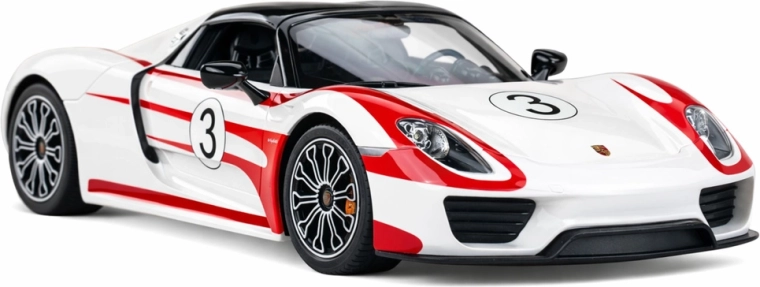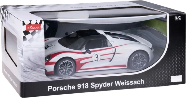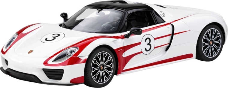 Ta licenčni model Porsche 918 Spyder Weissach v beli barvi z rdečimi dirkalnimi črtami zvesto posnema legendarni supersportnik – od aerodinamične karoserije do podrobno izdelanega kokpita. Kakovostna plastika in čvrsti mehanski deli zagotavljajo vzdržljivost in dolgo življenjsko dobo.