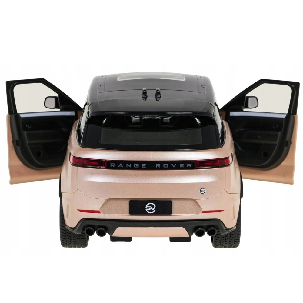 Uživajte v dinamični vožnji z licenciranim RC modelom RANGE ROVER SPORT SV v elegantni zlati izvedbi. Zahvaljujoč frekvenci 2,4 GHz je upravljanje gladko in brez motenj, z natančnim manevriranjem v vse smeri. LED osvetlitev povečuje realističnost in privlačnost vsake vožnje.