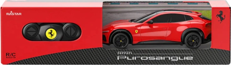 Podroben model FERRARI PUROSANGUE na daljinsko upravljanje v merilu 1:24 znamke Rastar navduši z realistično izdelavo, elegantno SUV silhueto in stabilnim upravljanjem 2,4 GHz. Ponuja vožnjo v vse smeri, neodvisno vzmetenje koles in trdno konstrukcijo iz kakovostne plastike – idealno za zabavo in kot zbirateljski model.