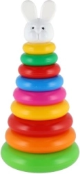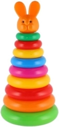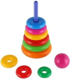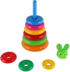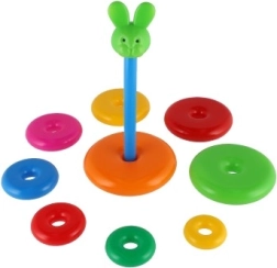 Ta zlagalna piramida z barvnimi obročki je idealna prva gradbena igrača. Otroci natikajo obročke na palico in jih zlagajo od največjega do najmanjšega, s čimer naravno urijo fino motoriko, potrpežljivost in logično razmišljanje. Osnovo predstavlja trdno plastično stojalo s palico in odstranljivim zgornjim delom (odvisno od različice).