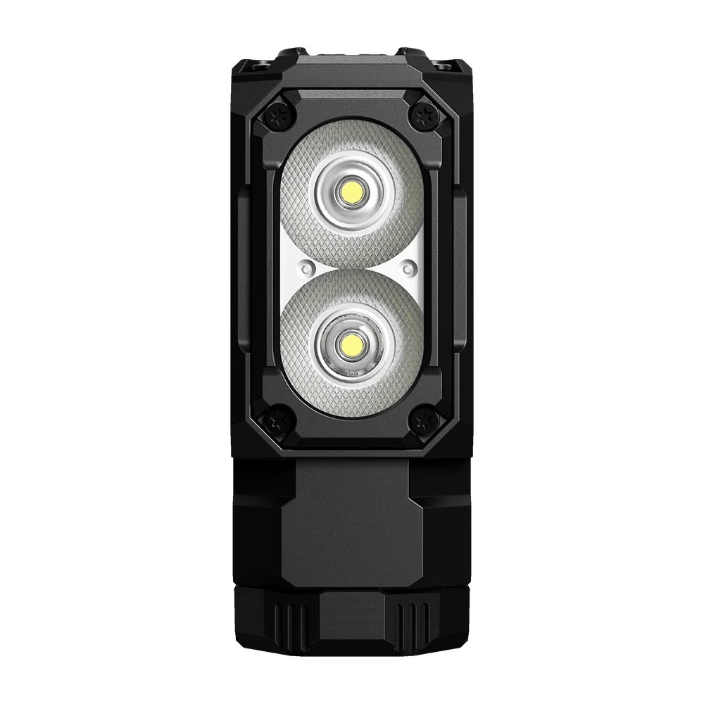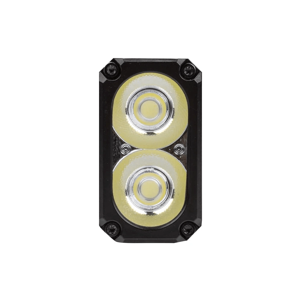 Wuben E7 je zmogljiva večnamenska svetilka za uporabo na prostem, v delavnici in doma. Dve LED Osram P9 ponujata svetilnost do 1800 lumnov z dosegom 132 metrov, medtem ko nevtralni odtenek 5000K verno prikazuje barve. V najnižjem načinu 5 lm sveti do 60 ur.