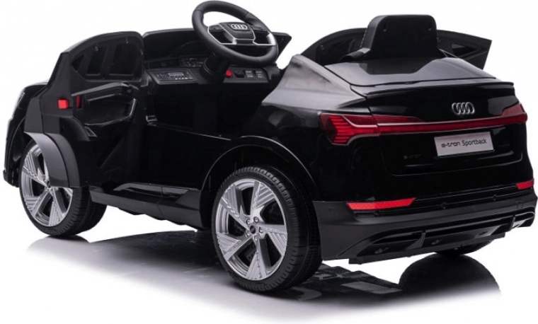 Stilski električni avtomobilček AUDI e-tron Sportback v elegantni črni barvi navduši z realističnim videzom, varnim počasnim zagonom in starševskim daljinskim upravljanjem 2,4 GHz. Ponuja vožnjo naprej in nazaj, odpirajoča se vrata, štirikolesno vzmetenje ter bogato multimedijsko opremo (luči, glasba, MP3/USB/TF).