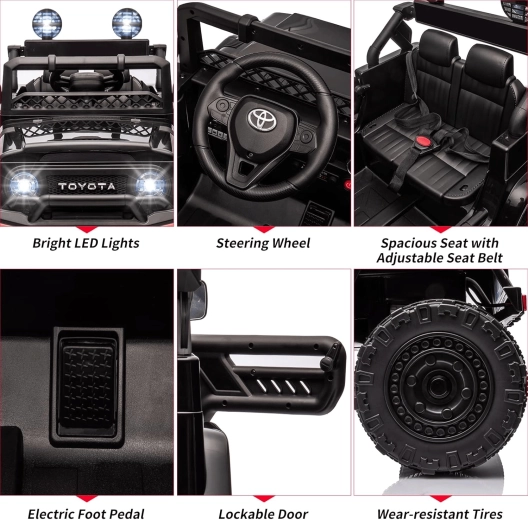 Razveselite otroke z električnim avtom, navdihnjenim z ikonično znamko TOYOTA. Združuje privlačen dizajn s praktičnimi funkcijami za vsakodnevno zabavo doma in na prostem. Zaradi bogate opreme in varnostnih elementov je idealna izbira za prve vožnje.