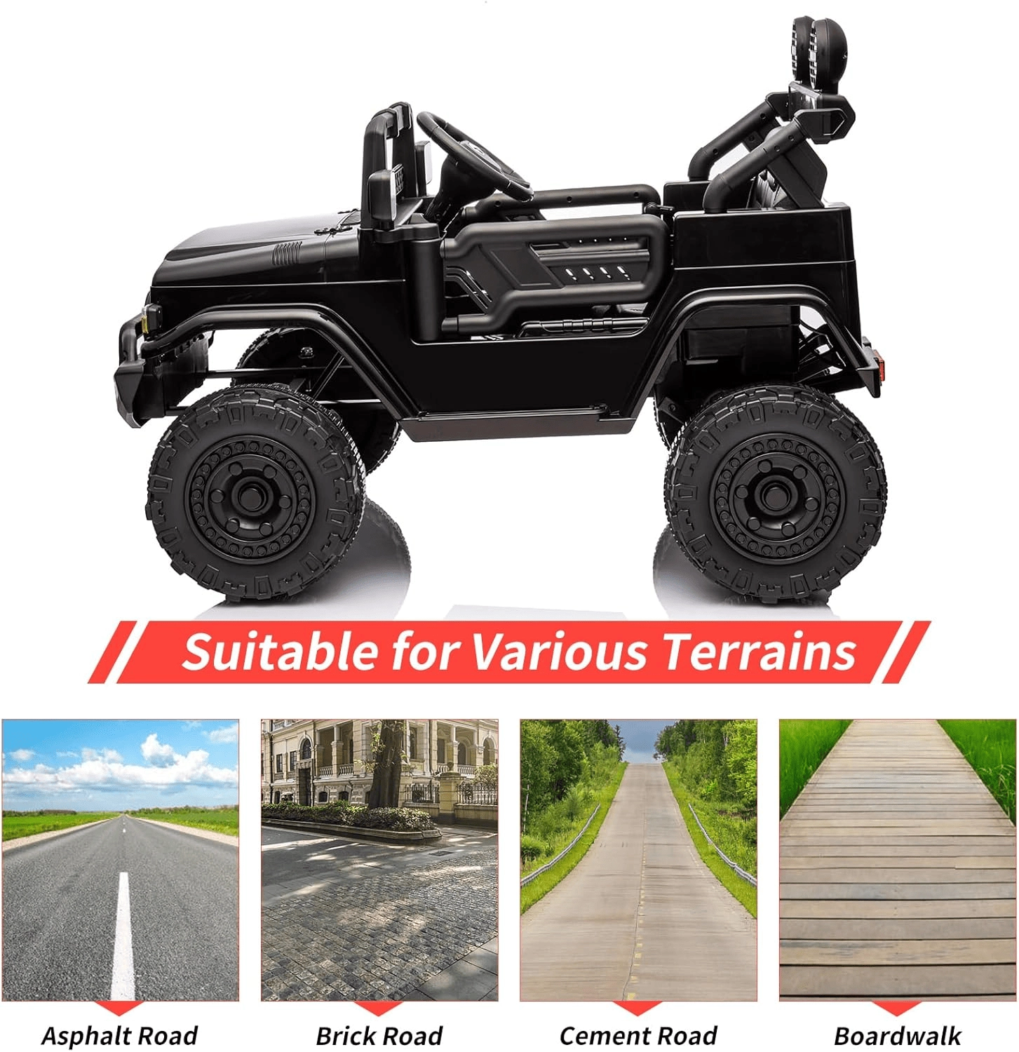 - Enostavno upravljanje: volan in pedal za otroka, prestava naprej/nazaj, odpirajoča se vrata za udoben vstop.