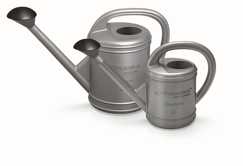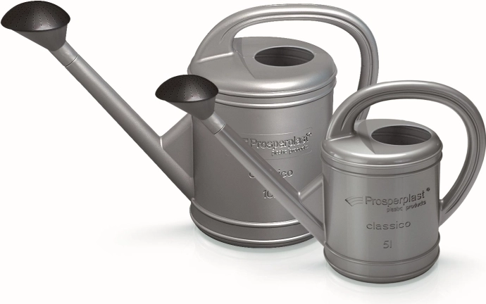 Kakovostna plastika, odporna na UV sevanje, ščiti zalivalko pred bledenjem in staranjem, zato srebrna barva in oblika dolgo ostaneta nespremenjeni. Zaradi premišljene ergonomije in uravnotežene zasnove se zalivalka udobno drži in omogoča bolj natančno usmerjanje curka vode – ne glede na to, ali zalivate grede, korita ali sobne rastline.