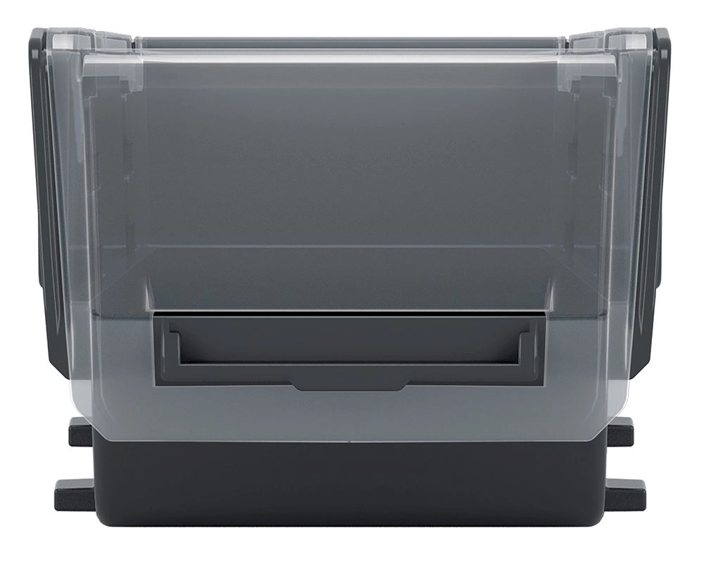 Konstrukcija omogoča varno zlaganje več škatel eno na drugo. Prihranite prostor v regalih in na delovni mizi ter ohranite red.