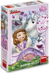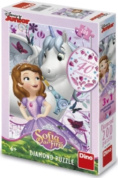 Čarobna sestavljanka s princeso Sofijo in samorogom bo otrokom prinesla ure zabave in veselja. Vsebuje 200 koščkov in omogoča ustvariti čudovito sliko, ki jo je po lepljenju mogoče okrasiti z bleščečimi kamenčki. Izdelano v Češki republiki iz trpežnega, zdravstveno neškodljivega kartona. Idealno darilo za otroke od 6 let, ki razvija fino motoriko, potrpežljivost in domišljijo. 200 koščkov, bleščeči kamenčki, lepilo priloženo, izdelano na Češkem.