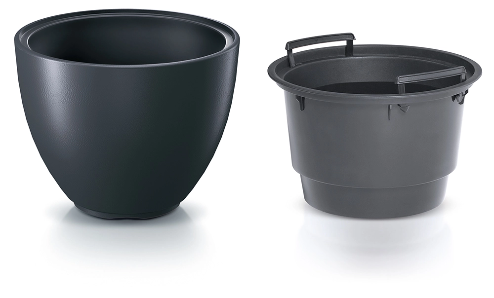 Praktičen vstavni vložek olajša presajanje in nego rastlin. Cvetlični lonec je odlična izbira za okrasno cvetje, zelenje sobnih rastlin in aromatična zelišča, tako v dnevni sobi kot na terasi ali v pisarni.