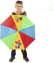 Brez hitenja pred ploho – otroški dežnik z motivom KRTEK je praktičen, lahek in varen za vsakodnevno nošenje. Barviti paneli z veselimi ilustracijami pritegnejo na prvi pogled, rumeni ukrivljeni ročaj pa lepo sede v drobne roke.