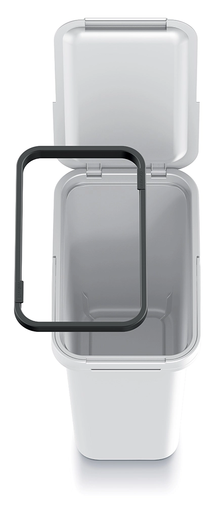 Nagibni pokrov omogoča hitro in higiensko odlaganje odpadkov brez neželenih vonjav. Vgrajen notranji okvir vrečko trdno drži na mestu, preprečuje zdrs in olajša menjavo.