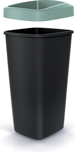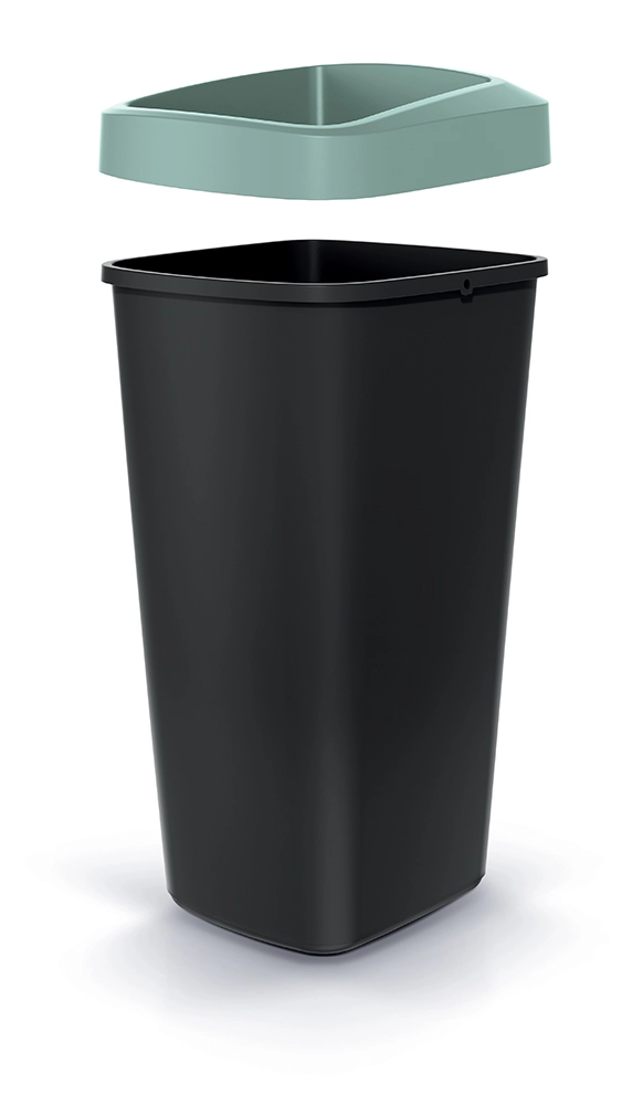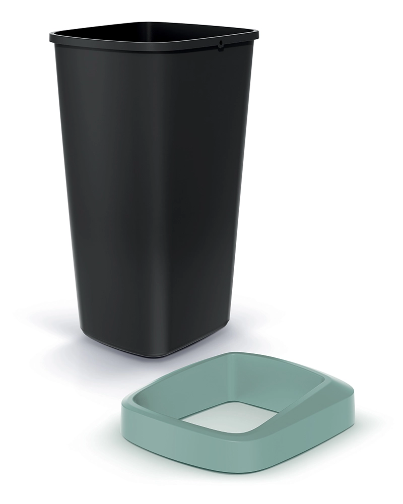 Koš je izdelan iz vzdržljive plastike, ki je lahka, enostavna za čiščenje in primerna za vsakodnevno uporabo. Odprt vrh omogoča hitro odlaganje odpadkov brez nepotrebnega stika s pokrovom – idealna izbira za frekventna mesta.