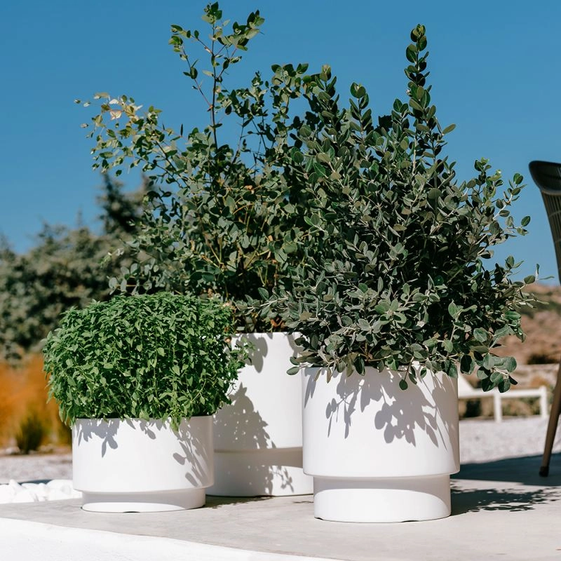 Cvetlični lonec HEOS v beli barvi je odlična izbira za moderne notranje prostore ter za terase, balkone in vrtove. Minimalistična valjasta oblika in mat površina delujeta čisto in brezčasno, medtem ko vzdržljiva plastika zagotavlja dolgo življenjsko dobo tudi pri zunanji uporabi.