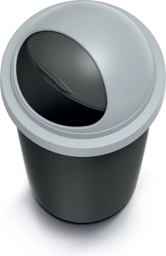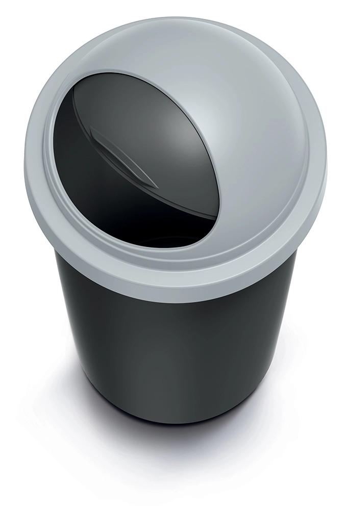 Stilski koš z nihajnim pokrovom ponuja velikodušno prostornino 30 litrov v kompaktnih merah, zato se odlično poda v manjše kuhinje, pisarne ali hodnike. Odporna plastična konstrukcija zagotavlja dolgo življenjsko dobo in preprosto vzdrževanje, medtem ko se kombinacija reciklirane črne in svetlo sive barve zlahka ujema z različnimi interierji.