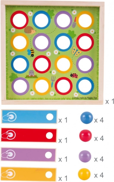 Zabavna družinska igra za otroke od 3 let, ki razvija fino motoriko, pozornost in koordinacijo oko–roka. Cilj je s pomočjo izstreljevalnikov izstreliti barvne kroglice v ustrezne odprtine na plošči. Igra za 2–4 igralce v rdeči, modri, rumeni in vijolični barvi. Izdelano iz odgovorno pridobljenega lesa in v skladu z evropskimi varnostnimi standardi.