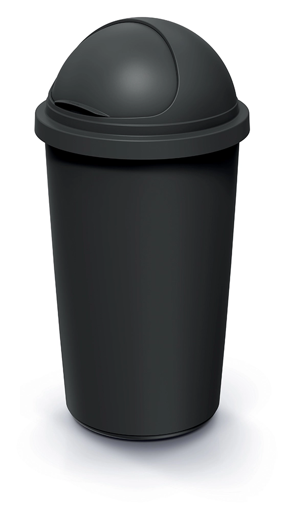 Koš za odpadke COMPACTA R Roller s prostornino 60 litrov je zanesljiva in okolju prijazna rešitev za vsakodnevno ločevanje in zbiranje odpadkov. Ohišje in pokrov sta izdelana iz reciklirane črne plastike, ki je odporna, lahka in enostavna za čiščenje. Zahvaljujoč kompaktnim meram 39,5 × 39,5 × 77,2 cm se koš zlahka prilega tudi v manjše prostore, ne da bi zavzemal preveč prostora.