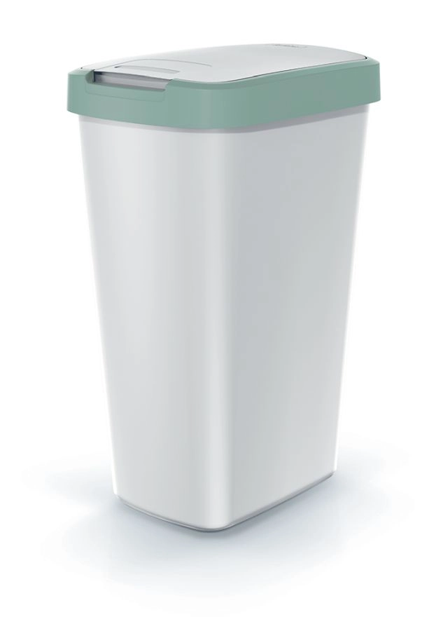 Praktičen in prostorsko varčen koš za odpadke s prostornino 45 l za gospodinjstva in pisarne. Zaradi ozke oblike se prilega tudi manjšim prostorom, njegova loputa pa se odpira na dva načina za udoben dostop. Estetski okvir trdno drži vrečko, pepelnato ohišje s svetlo zelenim pokrovom pa olajša ločevanje odpadkov. Vzdržljiva plastika zagotavlja enostavno čiščenje in dolgo življenjsko dobo.