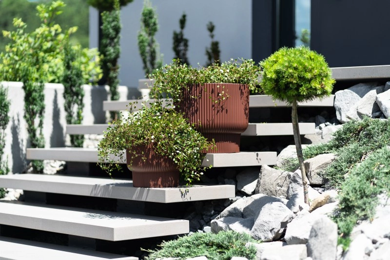 Navpično rebranje in zožena oblika rastlinam dodata moderen okvir. Antracitna barva se zlahka ujema s pohištvom in zunanjo arhitekturo.