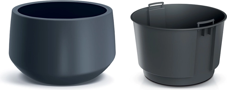 Lahek in trden plast olajša rokovanje, medtem ko okrogla oblika in čiste linije sledijo aktualnim trendom notranje in vrtne dekoracije. Prostornina 8 l nudi dovolj prostora za manjše rože in srednje velike grmičke.
