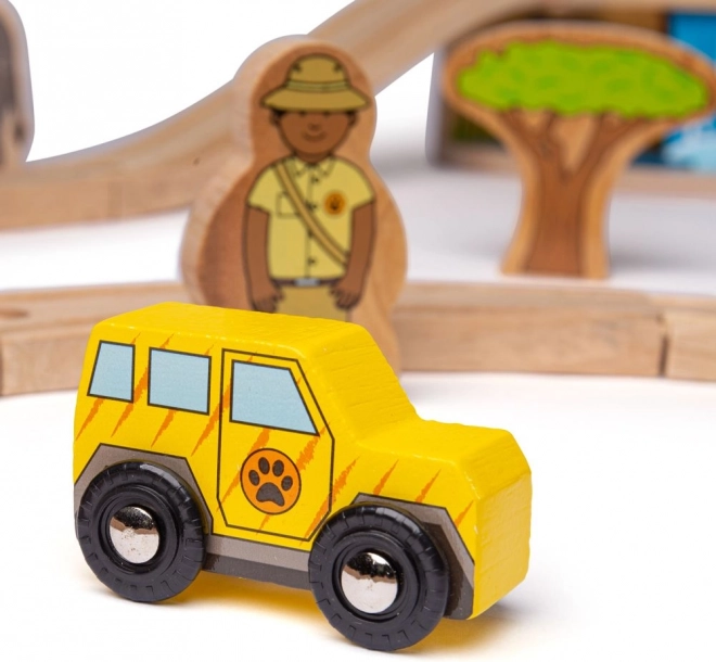 Poleg vlaka lahko otroci vključijo tudi safari vozilo – več možnosti igre, več zabave in razvoja spretnosti.