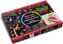 Ta deluxe praskalni komplet MELISSA & DOUG prinaša preprost in privlačen način za ustvarjanje izvirnih slik. Vsak list je prevlečen s črno plastjo, pod katero se skrivajo mavrične in izrazite barve. Dovolj je, da nežno praskate s priloženim peresom in barve takoj zaživijo.