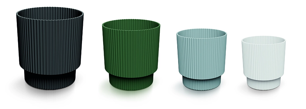 Zaradi lahke, a čvrste plastične konstrukcije je odporen na mehanske obremenitve, sonce in vlago, zato bo svoj videz ohranil dolgo časa. Vertikalni rebrasti vzorec doda dekorativni značaj in hkrati omogoča boljši oprijem pri prenašanju. Vgrajena rešitev odvajanja vode podpira kroženje zraka do korenin, kar koristi vitalnosti rastlin.