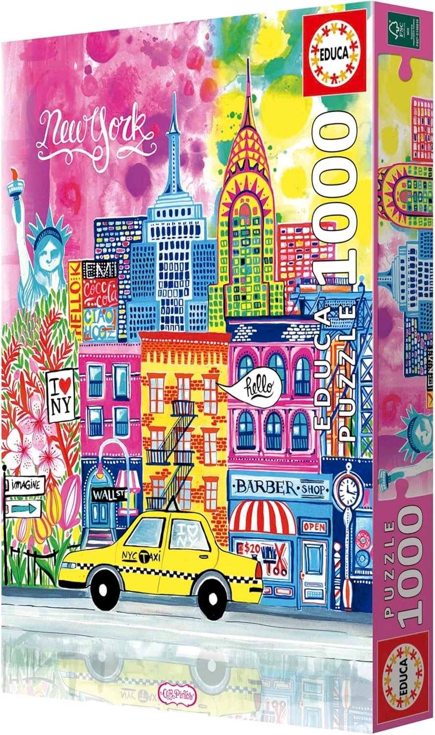 Odkrijte edinstven pogled na metropolo New York v umetniški interpretaciji Car Pintos. Sestavljanka Educa izstopa z natančnim izrezom, živimi barvami in kakovostnim kartonom, zaradi česar je sestavljanje prijetno in tekoče. Priloženo je praktično lepilo gratis – končno delo lahko takoj fiksirate in razstavite.