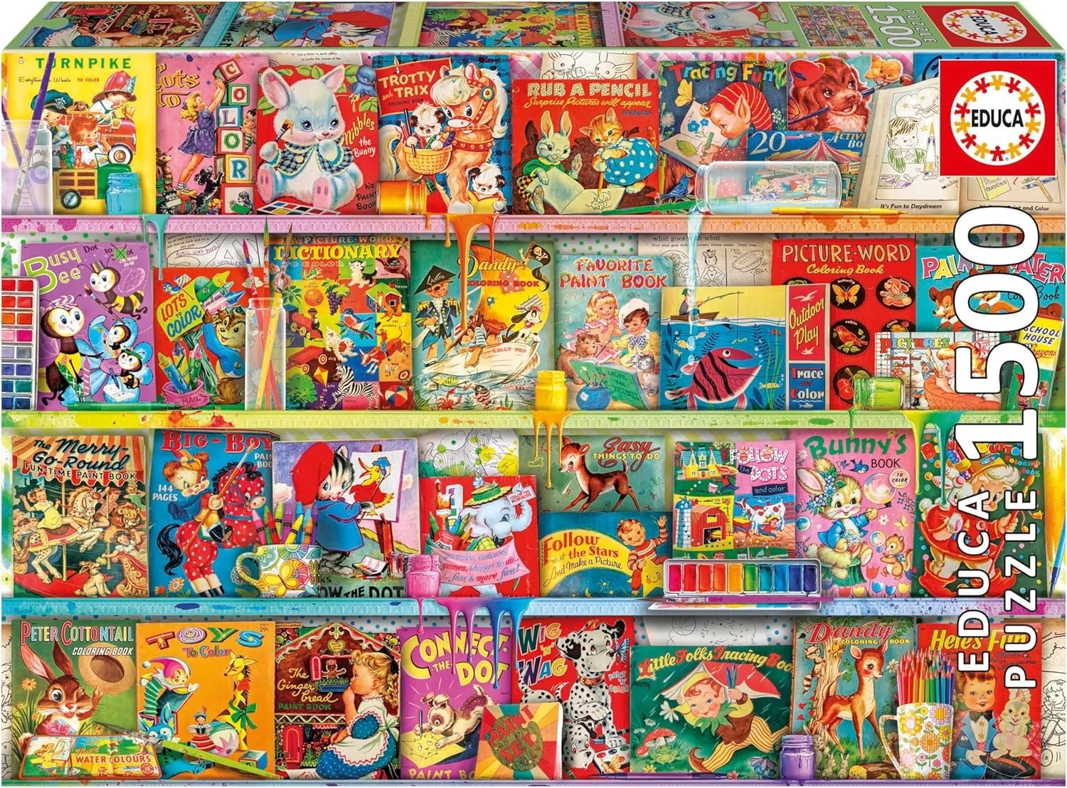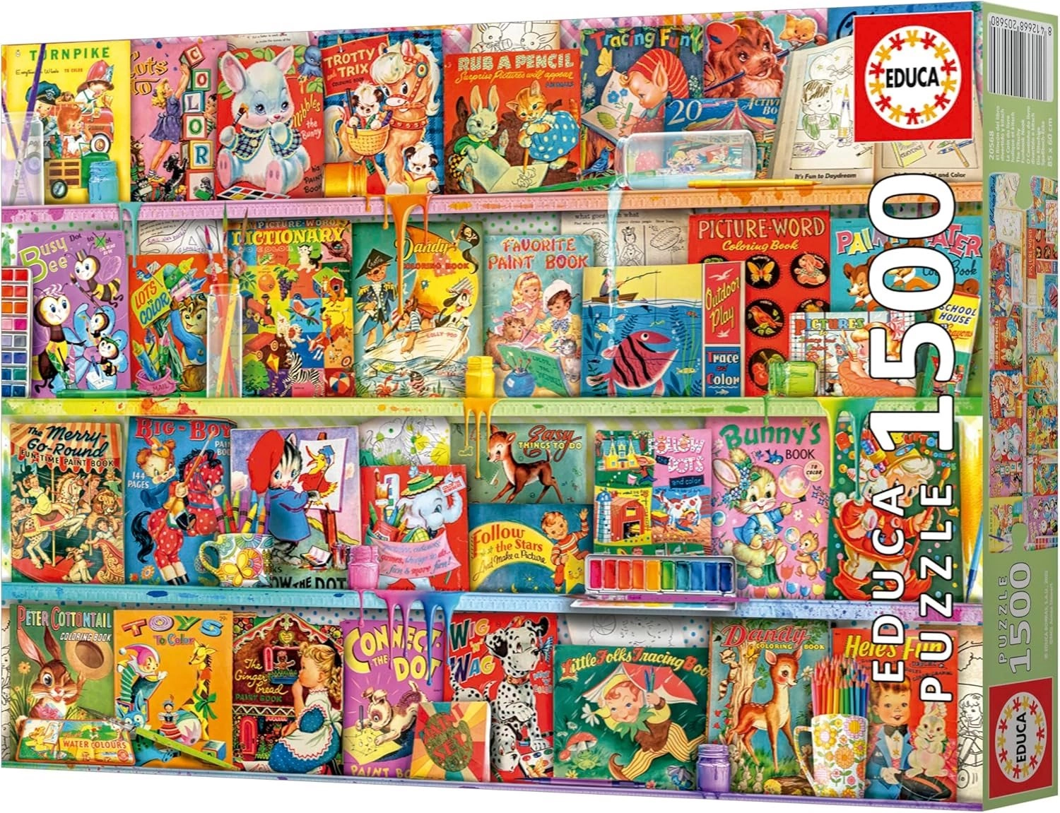 Odkrijte veselje ob sestavljanju s puzzle EDUCA s 1500 koščki z motivom kičasto zabavnega knjižnega kotička. V paketu je priloženo brezplačno lepilo za enostavno fiksiranje končne slike v velikosti približno 85 × 60 cm. Idealno za ljubitelje knjig, ki želijo uživati v kakovostni izdelavi in živih barvah med sproščujočimi trenutki.