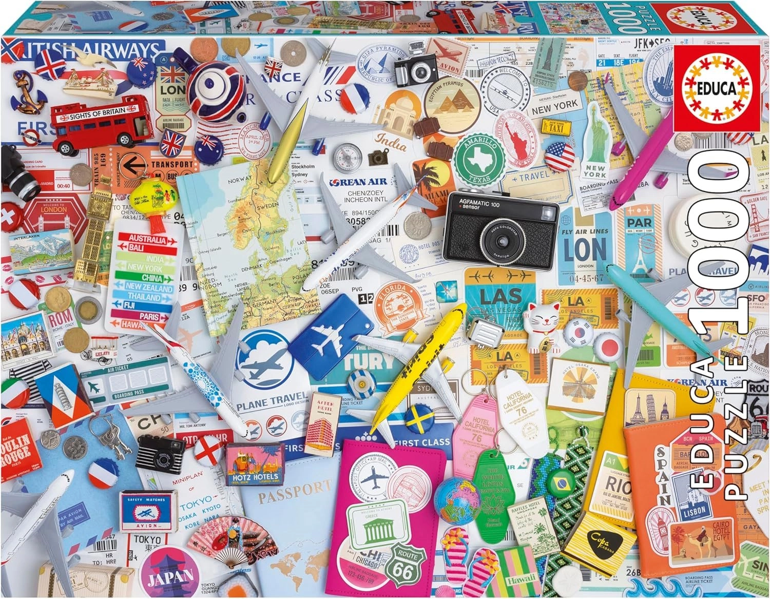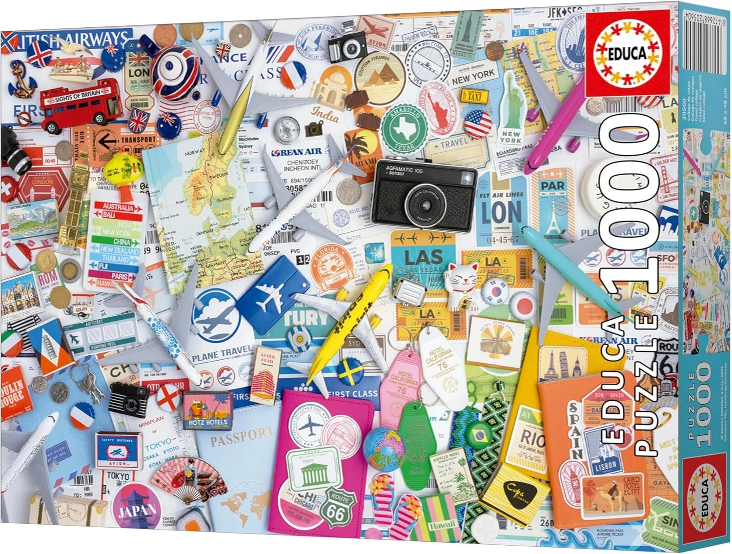 Uživajte v sprostitvi s kakovostno sestavljanko, ki ponuja 1000 koščkov, priloženo je lepilo brezplačno za enostavno fiksiranje končne slike. Po sestavljanju ima sestavljanka približno 68 × 48 cm in navduši z dovršeno kolažo potovalnih motivov.