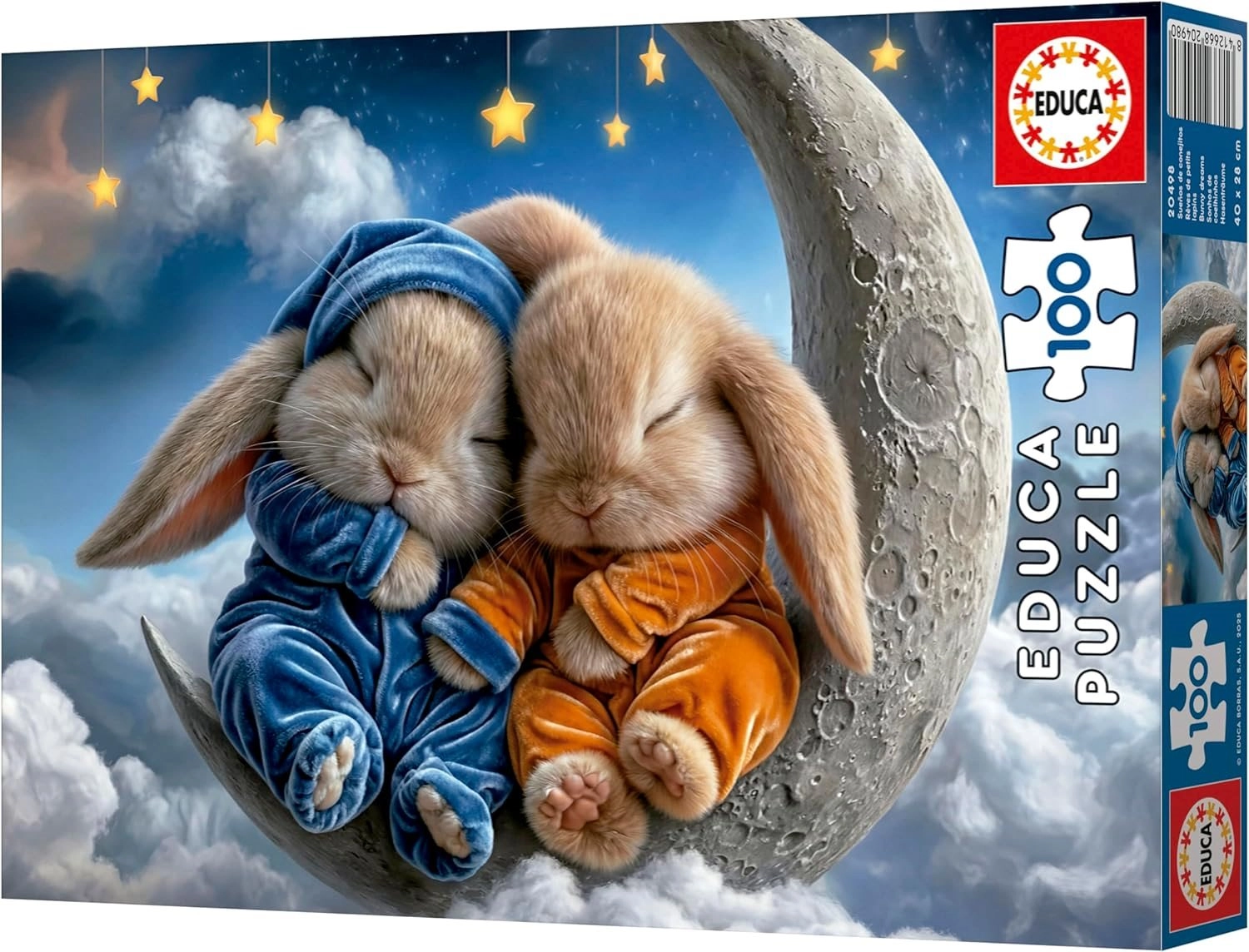 Prisrčne otroške sestavljanke z motivom spečih zajčkov blagovne znamke EDUCA bodo razveselile male graditelje. Ponujajo 100 trdnih koščkov, večji format za lažje rokovanje in živahne barve, ki otroke pritegnejo na prvi pogled. Sestavljena slika meri približno 40 × 28 cm – idealna zabava ter trening zbranosti in fine motorike.