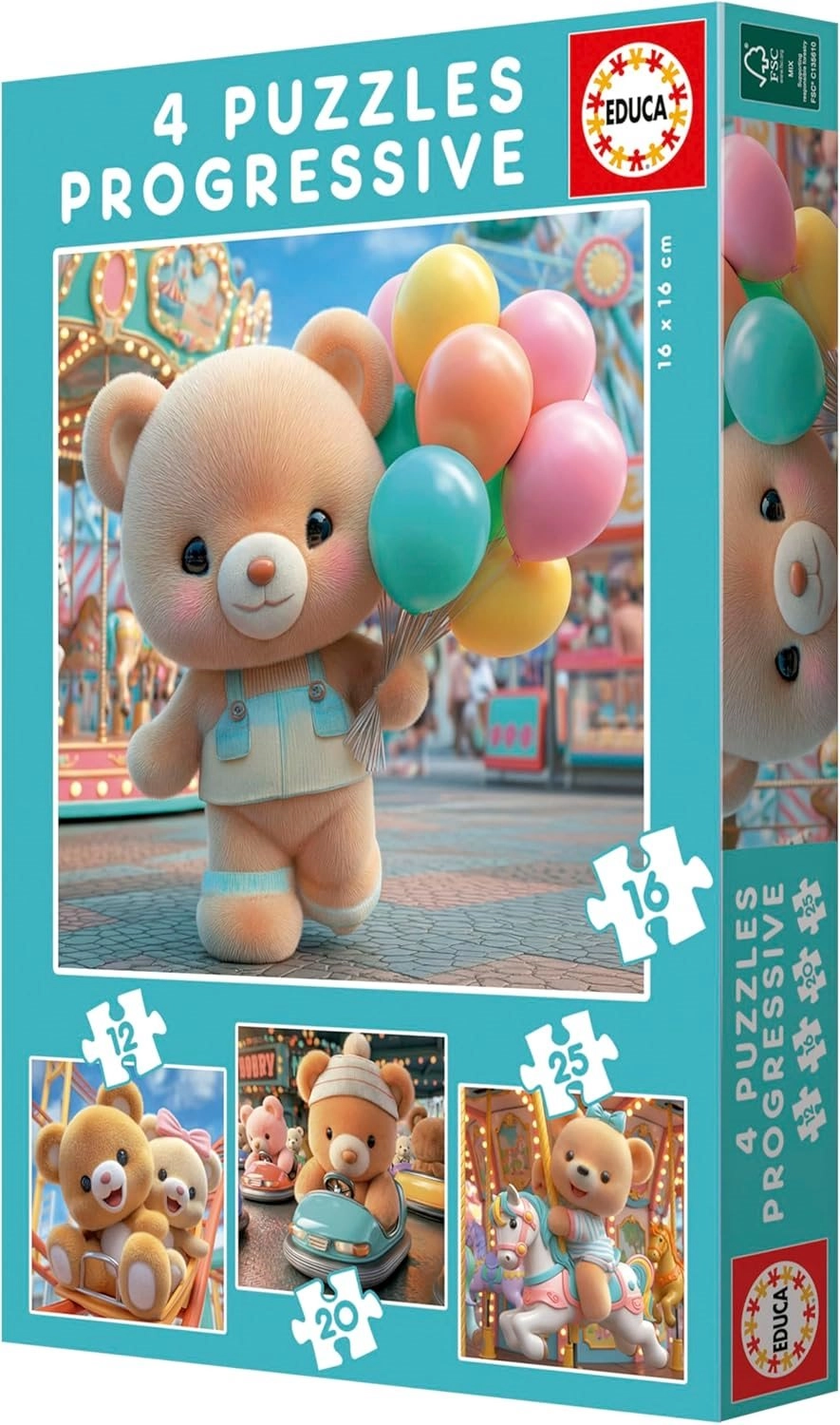 Odkrijte zabavni set 4v1 progresivnih sestavljank EDUCA s simpatičnim motivom medvedka. Vsaka sestavljanka ima različno število koščkov (12, 16, 20 in 25), zato lahko otroci postopoma urijo fino motoriko, logično razmišljanje in potrpežljivost. Primerno za prve poskuse sestavljanja zahvaljujoč čvrstim, lahko oprijemljivim koščkom in kompaktni velikosti približno 16 × 16 cm po sestavi.