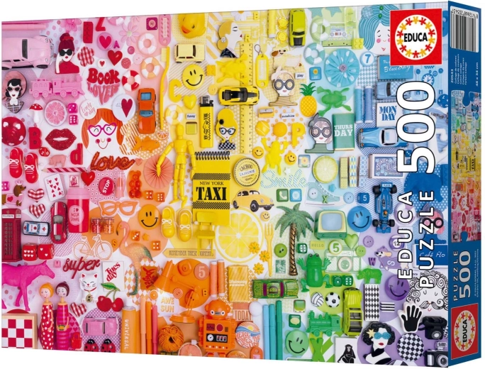 Uživajte v sprostitvi s kakovostno sestavljanko EDUCA s 500 koščki. Čaka vas pisana barvna kolaž, natančno izrezani koščki in lepilo gratis za preprosto fiksiranje dokončane slike. Po sestavljanju meri sestavljanka približno 48 × 34 cm.