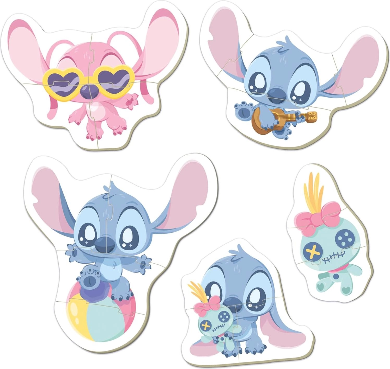 Odkrijte zabavne obrisne baby sestavljanke s priljubljenim likom Stitch znamke Educa. Set ponuja 5 progresivnih sestavljank s 3–5 koščki, ki so veliki in čvrsti za enostaven oprijem z majhnimi rokicami. Spodbujajo pozornost, psihomotorični razvoj, domišljijo in radovednost otrok od 24 mesecev naprej.