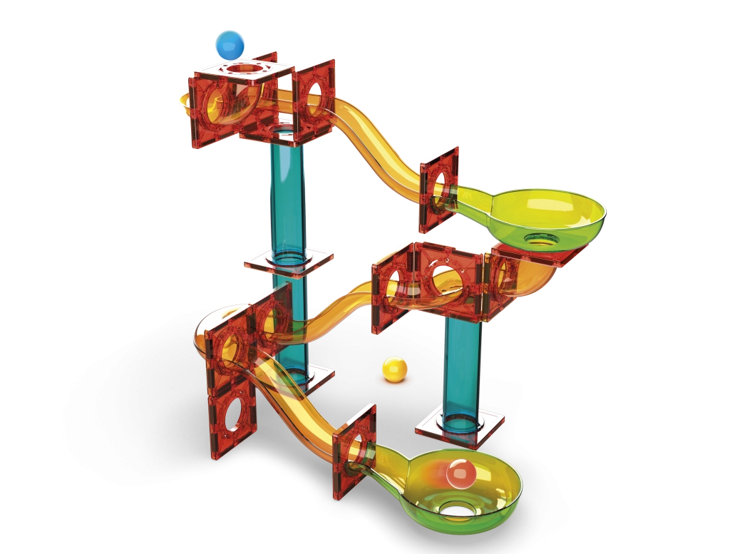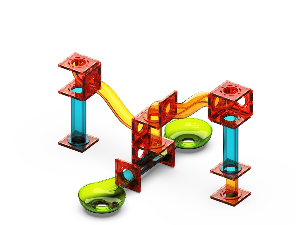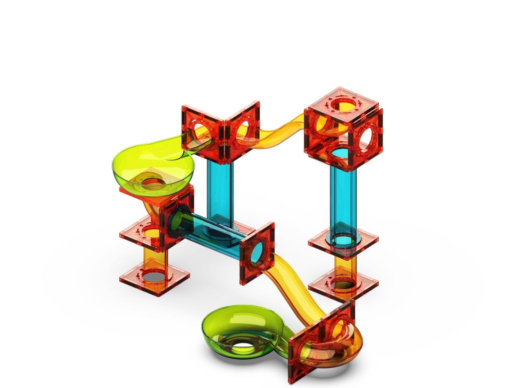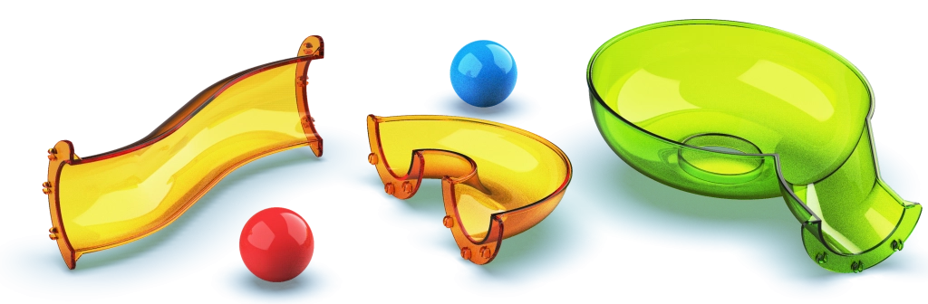 Prosojna plastika poudari gibanje kroglic in spodbuja opazovanje hitrosti, gravitacije in smeri vožnje. Odličen vizualni in izobraževalni učinek.