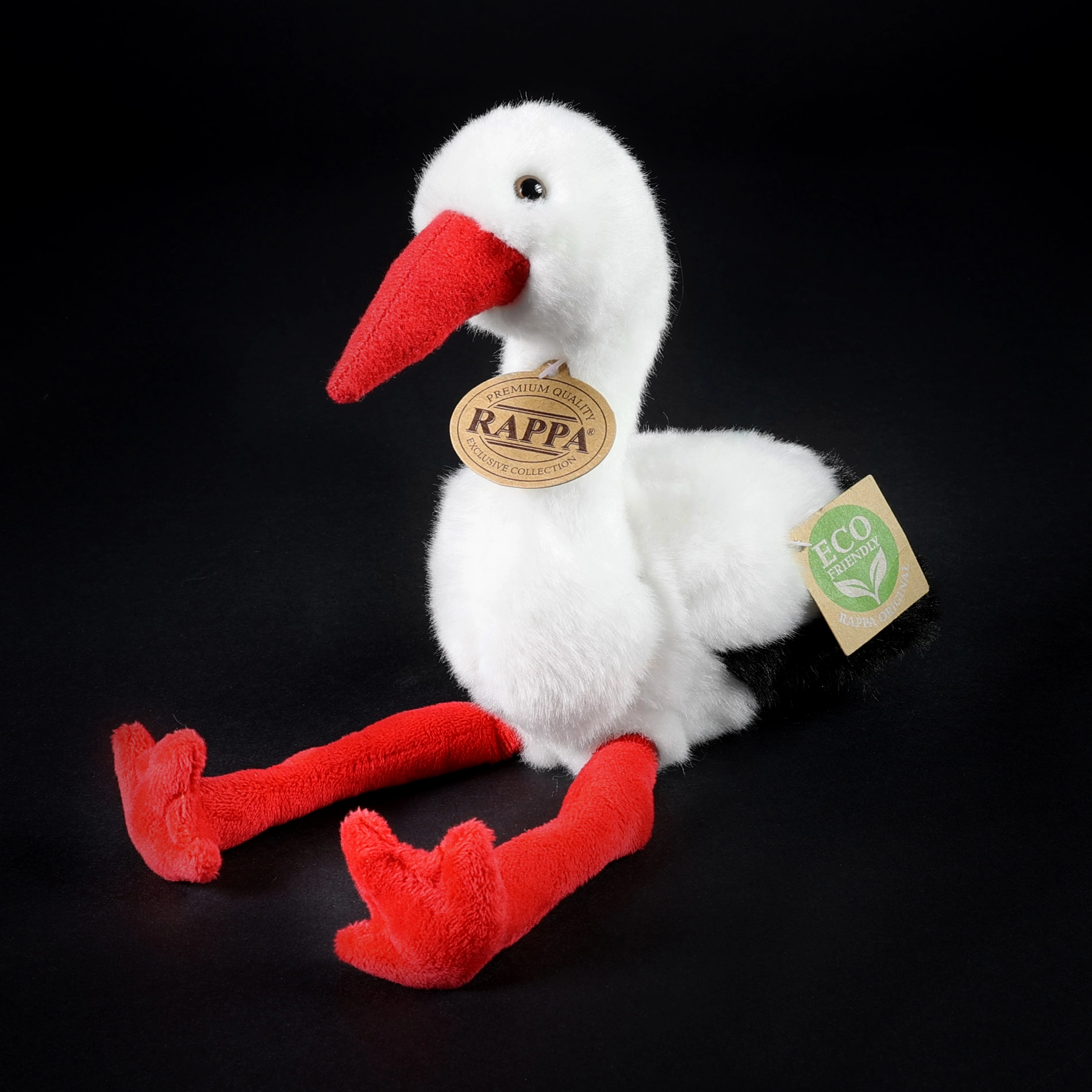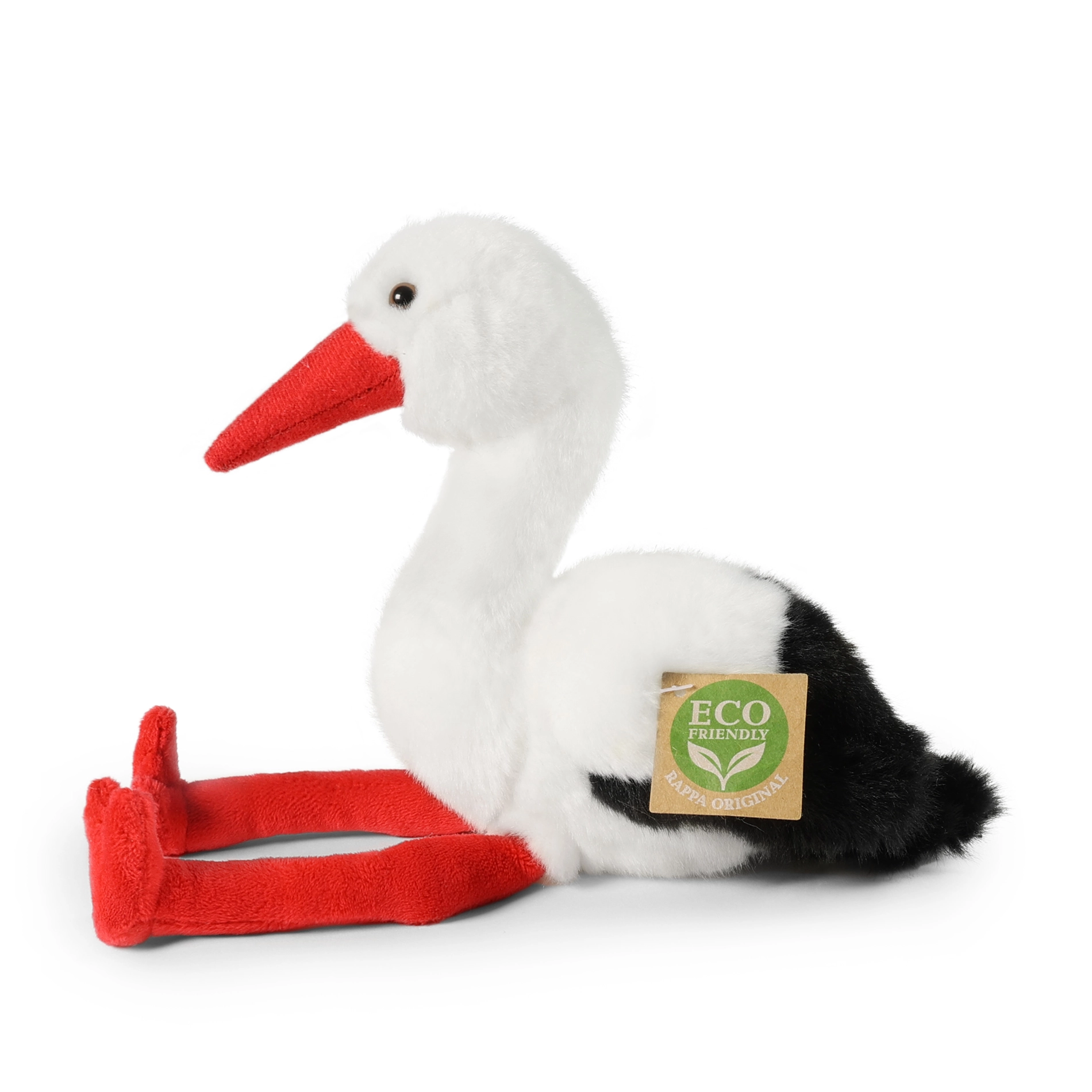 Ljubka plišasta štorklja velikosti 20 cm iz ekskluzivne kolekcije RAPPA razveseli otroke in odrasle. Izdelana je iz mehkečkega materiala, z ročno obdelavo za realističen videz in z okolju prijaznim polnilom iz recikliranih PET plastenk – varna tudi za otroke od rojstva.
